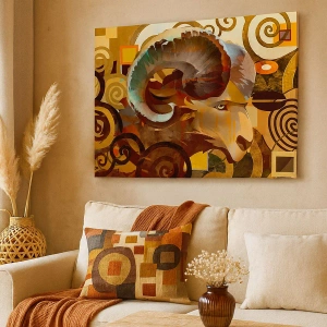 - O imprimare pe pânză care înfățișează un berbec simbolic într-o compoziție abstractă plină de spirale și culori calde. O decorațiune unică ce aduce energie și caracter oricărui interior.