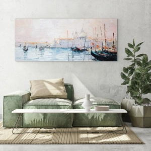 Această decorațiune este o alegere excelentă pentru cei care apreciază arta impresionistă și compozițiile delicate, elegante. **Peisajul cu bărci** și clădiri reprezintă armonia și frumusețea naturii închise într-o formă artistică ce inspiră și îmbogățește interiorul.
