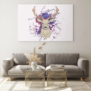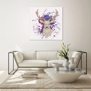 - Pictura înfățișează o ilustrație a unui cerb pe un fundal abstract. O compoziție uimitoare, dinamică, perfectă pentru un birou sau o sufragerie.