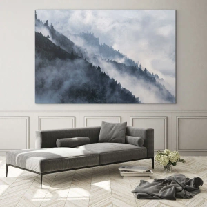 - Un peisaj atmosferic care înfățișează o pădure de munte învăluită într-o ceață densă. Schimbările subtile de tonuri în nuanțe de albastru și verde conferă compoziției un caracter misterios și liniștitor. Perfect pentru interioare inspirate de natură.