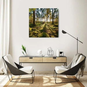 Ceas de perete - Ceas pe sticlă - Lumina soarelui strălucind prin copacii înalți din pădure - 30x30cm - Pădurea misterioasă - Decorațiune modernă pentru perete pentru living, bucătărie și dormitor ARTTOR