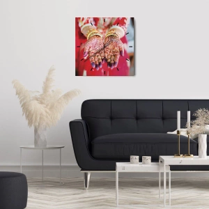 Modelul „Gata să prinzi fericirea” înfățișează o scenă extrem de simbolică: mâini feminine acoperite cu modele bogate în henna, ridicate într-un gest de așteptare. Îmbrăcămintea roșie, tradițională și bijuteriile din aur completează compoziția, creând o imagine plină de emoție, frumusețe și tradiție.