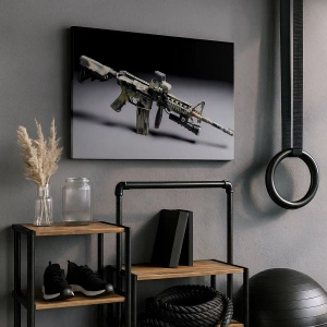 Calitatea ridicată a imprimării și detaliile precise fac ca tabloul să iasă în evidență față de alte decorațiuni murale. Pușca cu optică și accesorii militare suplimentare, imortalizată pe pânză, poate fi, de asemenea, un cadou interesant pentru iubitorii de militarism și tehnologie militară.