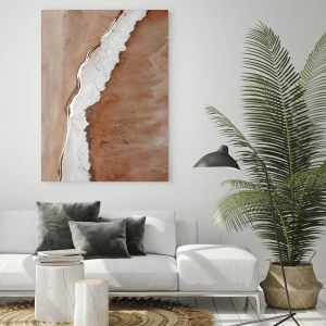 Culorile pământii utilizate - maro, bej și alb pur - creează o paletă coerentă, perfectă pentru interioarele inspirate de natură. Contrastul dintre linia de lumină și fundalul cald accentuează ritmul și direcția compoziției, conducând privirea privitorului și conferind picturii o dinamică subtilă. Tranzițiile tonale delicate și o textură vizibilă fac ca pictura să pară aproape pictată manual.