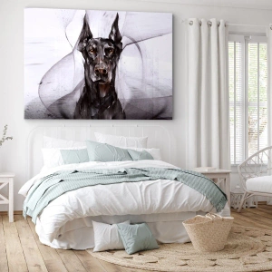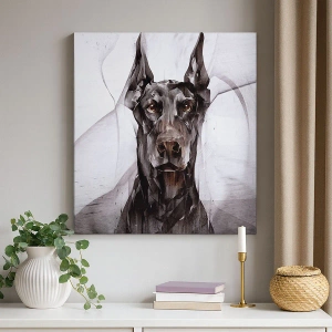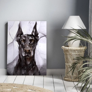 - Acest portret artistic abstract de câine prezintă un design modern și detalii geometrice. Este completarea perfectă pentru interioarele minimaliste sau în stil industrial.
