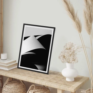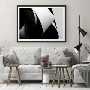 - Posterul prezintă o compoziție elegantă în alb-negru, unde lumina și umbra creează forme abstracte. Designul minimalist și formele geometrice conferă interiorului un caracter modern.