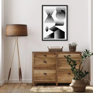 - Acest poster modern prezintă o compoziție abstractă de forme geometrice în alb și negru. Grafica contrastantă și dinamică este perfectă pentru interioarele minimaliste.