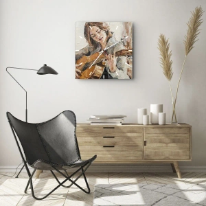 Tema muzicală subliniază subtilitatea și natura lirică a mesajului. Figura unei femei, cufundată în sunetele unei chitare, devine un simbol al pasiunii interioare și al expresiei artistice. Această compoziție este ideală pentru spațiile în care arta, creativitatea și emoția își au locul – în camere de zi, camere de muzică, studiouri creative și biblioteci.