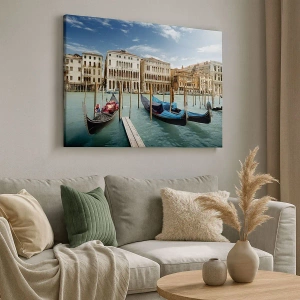 Tablou pe pânză Canvas - Veneția cu gondole și palate pe fundalul cerului - 70x50cm - Palate în albastru - Decorațiune modernă pentru perete pentru living și dormitor ARTTOR