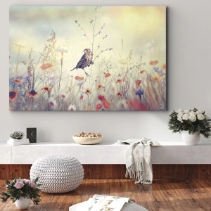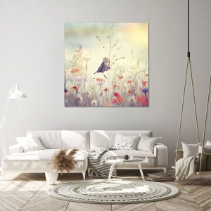 Tablou pe pânză - Portret de pasăre cu o pajiște în fundal - 30x30 cm