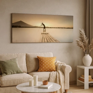 - Acest tablou înfățișează un bărbat pe o plută de bambus în timpul apusului. Un motiv pașnic și armonios, perfect pentru a adăuga căldură și farmec natural oricărui interior.