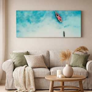 Formatul orizontal permite o adaptare ușoară la diverse amenajări interioare, atât moderne, cât și clasice. Motivul unei **barci** pe **ape turcoaz** nu este doar un decor, ci și o inspirație care aduce aminte de momente de vacanță și călătorii exotice.