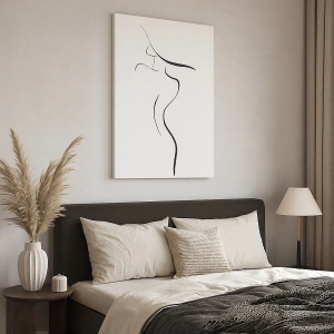 - O schiță subtilă a unei siluete feminine pe un fundal alb. Această imagine minimalistă aduce armonie și eleganță interioarelor moderne.