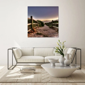 Tablou pe sticlă - Calea spre plajă la apus - 70x50cm - Deja se vede ținta - Decorațiune modernă pentru perete pentru living și dormitor ARTTOR
