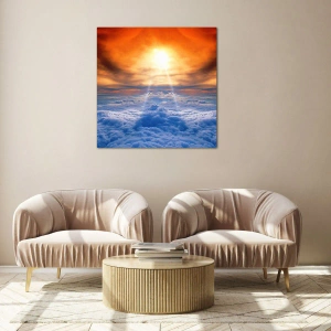Imprimeul artistic pe sticlă Nori iluminați de razele soarelui apus este o operă de artă unică ce surprinde frumusețea extraordinară a naturii într-un singur cadru. Prezintă o priveliște uluitoare a norilor învăluiți în lumina intensă a soarelui apus. Compoziția este plină de nuanțe calde de portocaliu și auriu, care se împletesc cu nuanțe delicate de albastru, creând un contrast și o armonie unice.