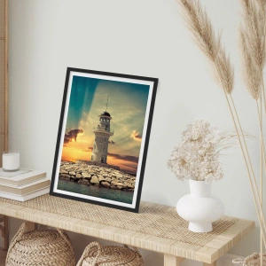 Poster în ramă neagră - Farul la apus - 50x70cm - Lumină - Bunătate - Frumusețe - Decorațiune modernă pentru perete pentru living și dormitor ARTTOR