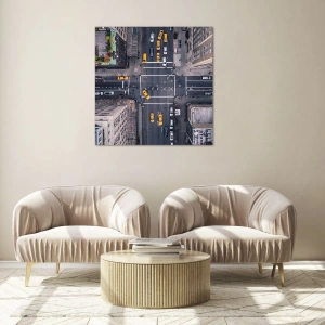 Tabloul pe sticlă este realizat din sticlă de 4 mm grosime. Marginile sticlei au o tăietură trapezoidală mată. Tabloul este sigur pentru utilizare și gata de agățat - are agățătoare metalice fixate pe spatele tabloului și distanțiere din spumă pentru a regla distanța uniformă a tabloului față de perete.