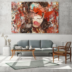 • Un portret abstract al unei femei în nuanțe de roșu și bej. O compoziție modernă care aduce artă și eleganță în interior.