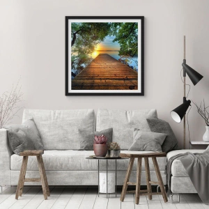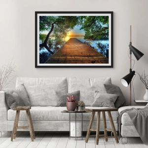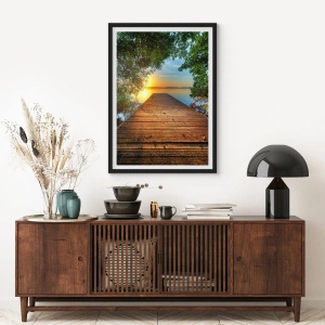 - Acest poster înfățișează un dig de lemn pe un lac, înconjurat de natură, la apus. Perfect pentru interioare cu un stil natural și relaxant. Produsul vine cu o ramă neagră de 50x70 cm.