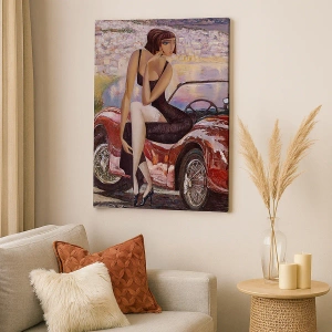 Tabloul „Femeie lângă o mașină roșie cu un oraș în fundal” este o operă de artă unică ce combină eleganța stilului **retro** cu frumusețea unui peisaj pitoresc. Înfățișează o femeie într-o ipostă sofisticată, stând lângă o **mașină** clasică, roșie, cu o panoramă a unui oraș fermecător vizibilă în fundal. Această lucrare introduce o atmosferă unică și un caracter artistic interiorului.