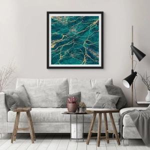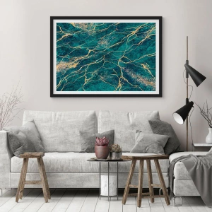 Poster în ramă neagră - Vene aurii abstracte pe un fundal de marmură verde - 50x70cm - Filon de aur - Decorațiune modernă pentru perete pentru living și dormitor ARTTOR