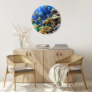 Ceas de perete - Busy Holiday Trail - Recif de corali cu pești tropicali într-un ocean albastru
