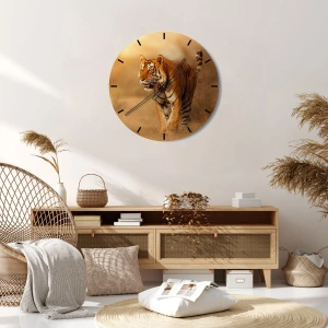 - Acest ceas de perete unic, cu diametrul de 30 cm, prezintă imaginea unui tigru pe fundalul unei pajiști aurii. O alegere perfectă pentru iubitorii de natură, va fi o piesă decorativă de calitate într-un living, birou sau dormitor.