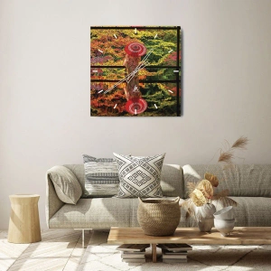 Ceas de perete - Ceas pe sticlă - Umbrelă japoneză printre frunzele de toamnă - 30x30cm - În templul naturii - Decorațiune modernă pentru perete pentru living, bucătărie și dormitor ARTTOR