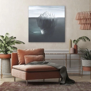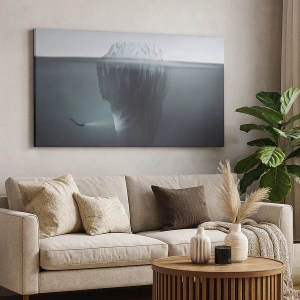- Această pictură înfățișează un aisberg în apă cu un scafandru și un reflector sub suprafață. Această compoziție subtilă și atmosferică aduce armonie și reflecție oricărui interior. O alegere ideală pentru iubitorii de artă modernă și natură.