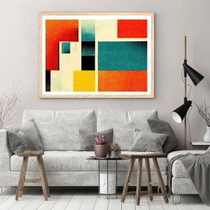 Poster în ramă de stejar deschis - Abstracție geometrică - energie bună - 50x70 cm