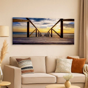 Tablou pe pânză - Direct la o plajă liniștită la apus de soare - 45x80 cm