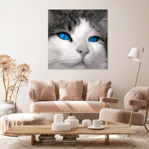 „Pisică extraordinară cu ochi albaștri” este o imprimare unică pe pânză care înfățișează un prim-plan al feței unei pisici în alb-negru, cu ochi intens albaștri. Această compoziție artistică atrage atenția prin contrastul său de culori, oferind interioarelor eleganță și modernitate. Perfectă pentru un living, dormitor sau birou, unde va deveni un punct focal al decorului.