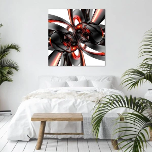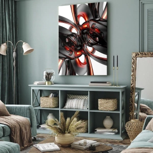 Tablou pe pânză - Mișcare în grafit și roșu - 65x120 cm
