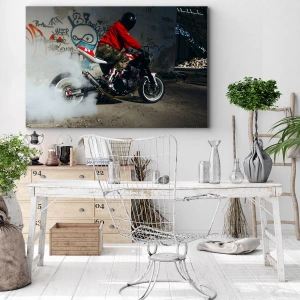 Pictura este, de asemenea, un cadou perfect pentru fanii motocicletelor, sporturilor extreme și stilului urban. Poate fi punctul central al unui design sau o completare unică pentru a sublinia individualitatea unui interior.