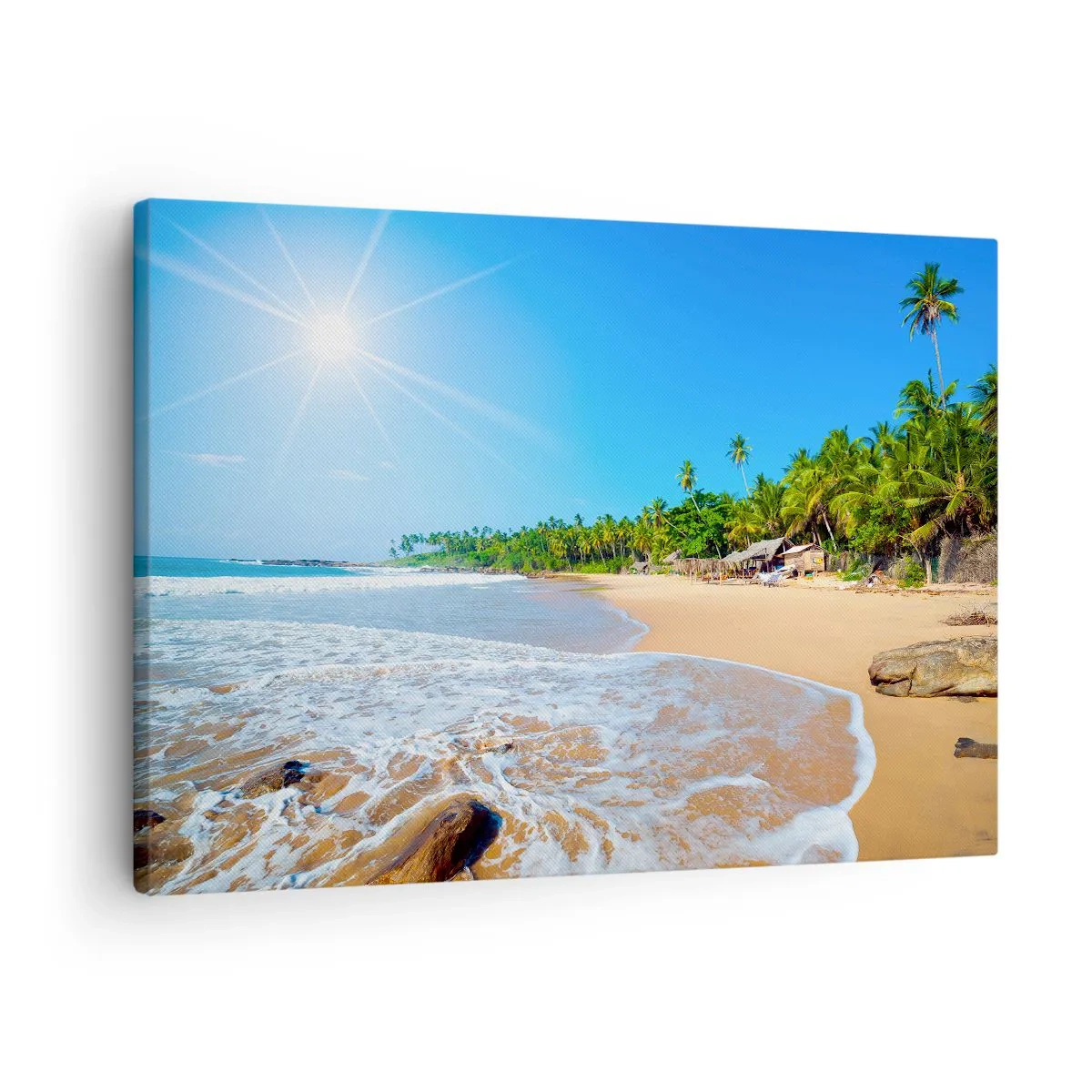 Tablou pe pânză Canvas - Plajă tropicală cu palmieri și cer albastru - 70x50cm - Un loc exotic pentru tine - Decorațiune modernă pentru perete pentru living și dormitor ARTTOR