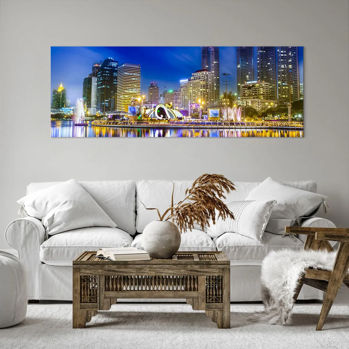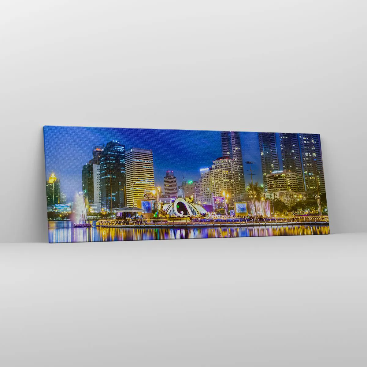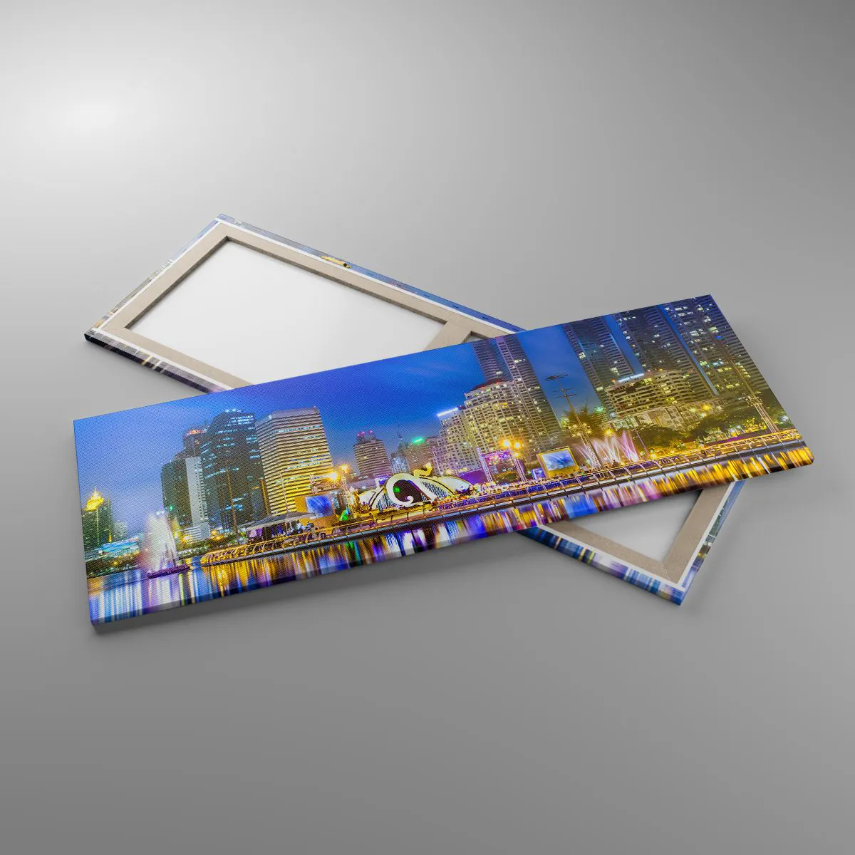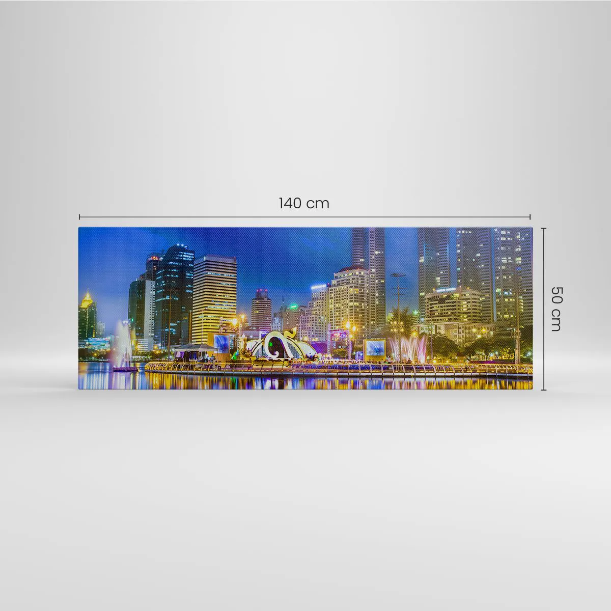 Tablou pe pânză - Noaptea de curcubeu a metropolei - 140x50 cm