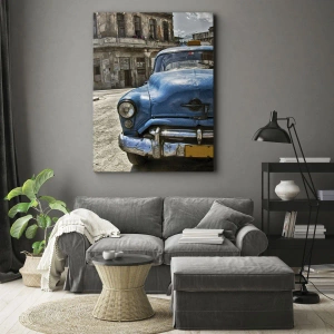 Tablou pe pânză Canvas - O mașină albastră veche pe stradă, în stil retro - 70x50cm - Vechiul este frumos - Decorațiune modernă pentru perete pentru living și dormitor ARTTOR