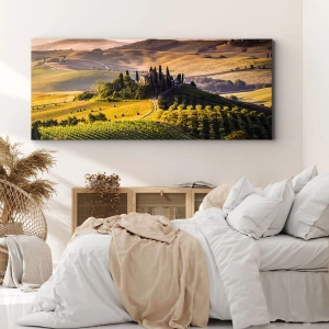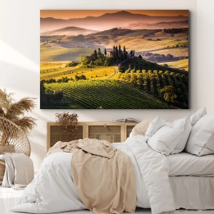 Tablou pe pânză Canvas - Peisaj toscan cu podgorii și o casă pe un deal - 70x50cm - Arcadia - peisaj toscan - Decorațiune modernă pentru perete pentru living și dormitor ARTTOR