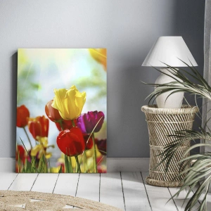 Tablou pe pânză Canvas - Lalele colorate în soare - 70x50cm - Toate culorile soarelui - Decorațiune modernă pentru perete pentru living și dormitor ARTTOR
