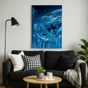 „Anatomia inginerească” este o pictură care impresionează prin stilul său modern și precizia tehnică. Reprezintă un desen tehnic al unei mașini, arătând construcția și detaliile de design într-o nuanță albastră futuristă. Această lucrare combină elemente de artă și inginerie, perfect potrivite pentru interioarele inspirate de tehnologie.
