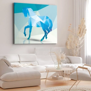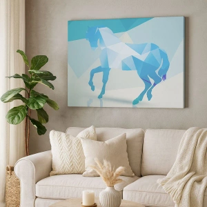 Tablou pe pânză Canvas - Siluetă geometrică a unui cal în nuanțe de albastru - 70x50cm - Cal geometric în turcoaz - Decorațiune modernă pentru perete pentru living și dormitor ARTTOR