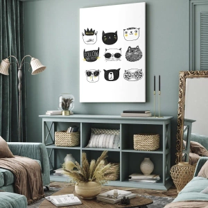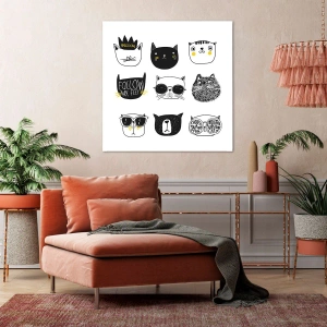 Această imprimare pe pânză cu peisaj de 70x50 cm, intitulată „Each Other”, prezintă o colecție de ilustrații elegante cu pisici în stil minimalist. Fiecare personaj are un design unic și detalii jucăușe care atrag atenția și evocă un zâmbet.
