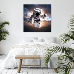 Tablou pe pânză Canvas - Astronautul în spațiu - 70x50cm - Salutări din spațiul cosmic - Decorațiune modernă pentru perete pentru living și dormitor ARTTOR