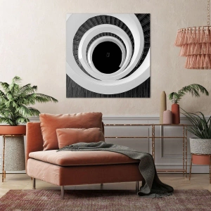 Tablou pe pânză Canvas - Scară în spirală alb-negru în stil modern - 70x50cm - Până la miez - Decorațiune modernă pentru perete pentru living și dormitor ARTTOR