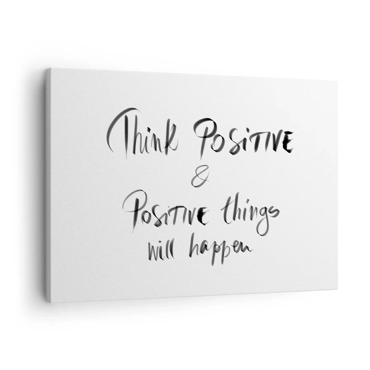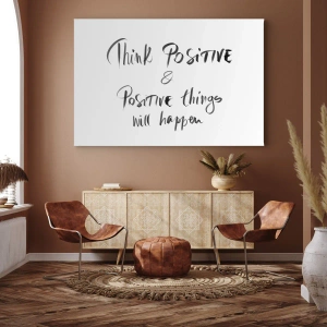 Tapet pe pânză „Inscripție inspiratoare în negru pe fundal alb” este un plus simplu, dar expresiv, pentru orice interior. Motivul central este textul „Gândește-te pozitiv și că lucrurile pozitive se vor întâmpla”, scris în caligrafie neagră, care aduce o notă de motivație și optimism spațiului. Combinația dintre stilul minimalist și conținutul inspirator face ca arta să se potrivească perfect interioarelor contemporane.