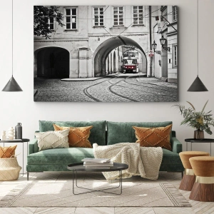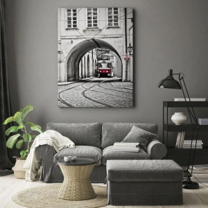 • Oraș, Tramvai, Praga, Arhitectură, alb-negru, orașe, automobile, vintage și retro, Pentru birou, Pentru birou, Pentru sufragerie, Pentru hol, Pentru living, Pentru dormitor, Gri, alb și negru, Vertical
