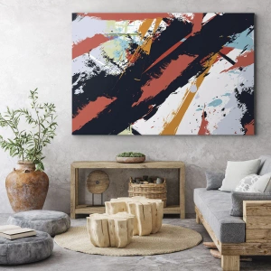 - imprimare pe pânză cu tușe abstracte în culori vibrante. Stilul său modern și dinamic adaugă energie și caracter artistic oricărui interior.