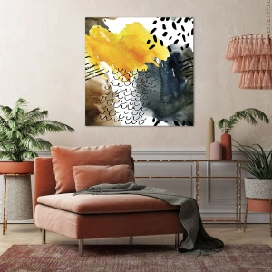 - O compoziție abstractă modernă cu accente galbene și modele grafice. Această decorațiune aduce energie și stil interioarelor moderne.