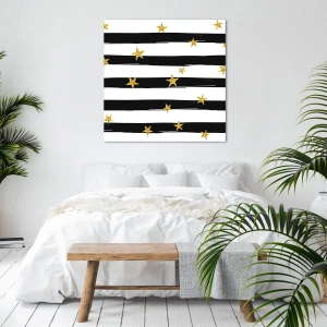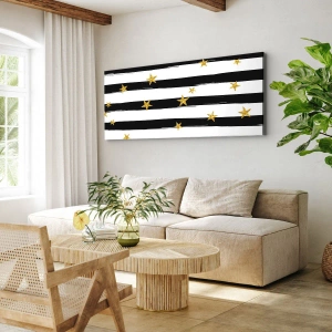 - Acest tablou prezintă dungi albe și negre împodobite cu stele aurii. Un design minimalist și elegant, perfect pentru interioarele moderne.