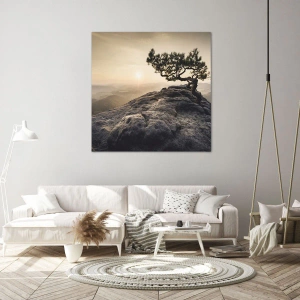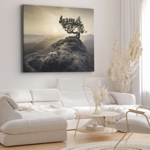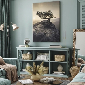- Această imprimare pe pânză înfățișează un copac solitar pe un vârf stâncos, iluminat de soarele apus. Perfectă pentru interioarele care prețuiesc armonia și natura.